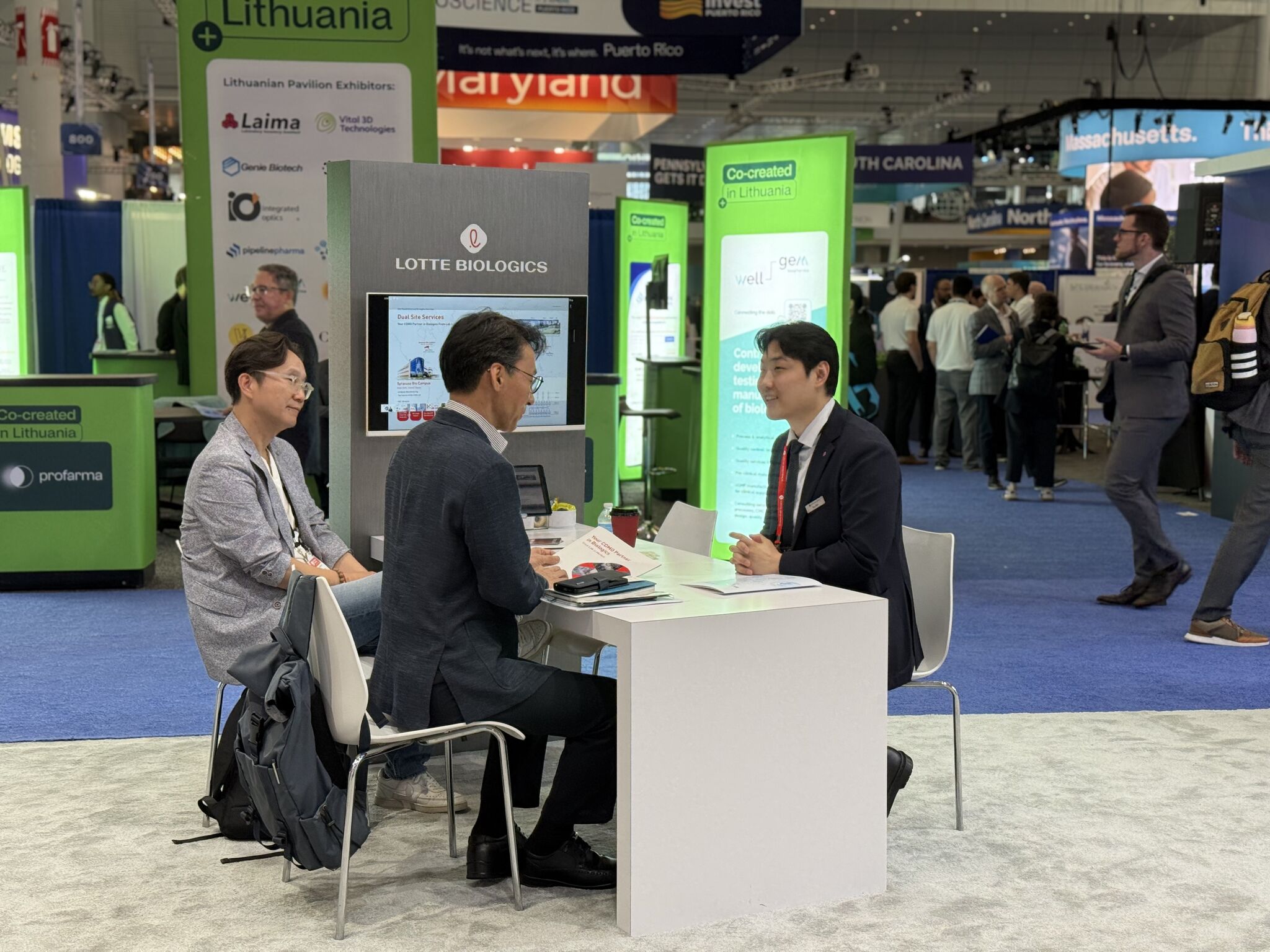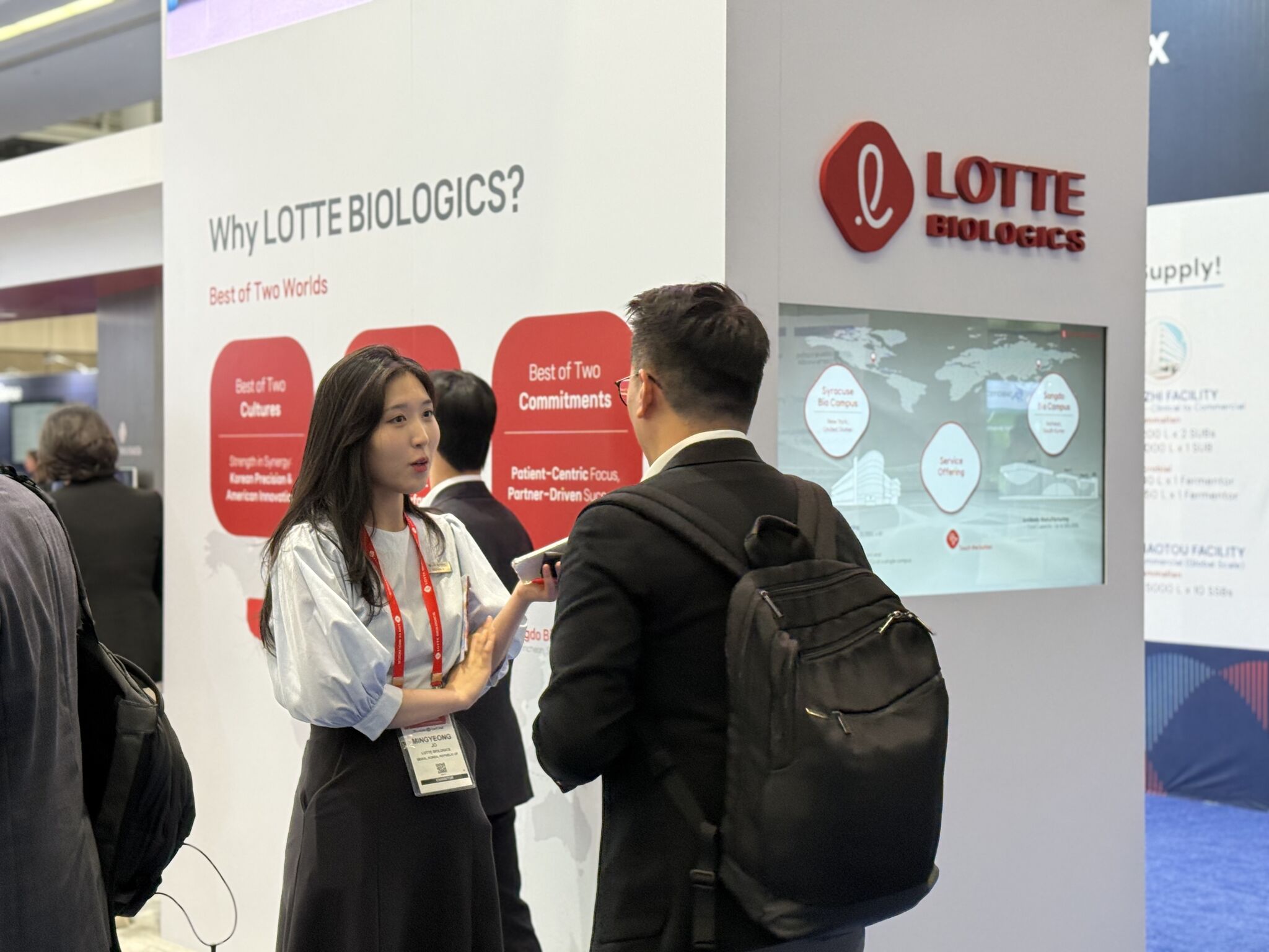 보스턴 현장에서, 롯데바이오로직스 부스의 열기가 계속 이어지고 있습니다.